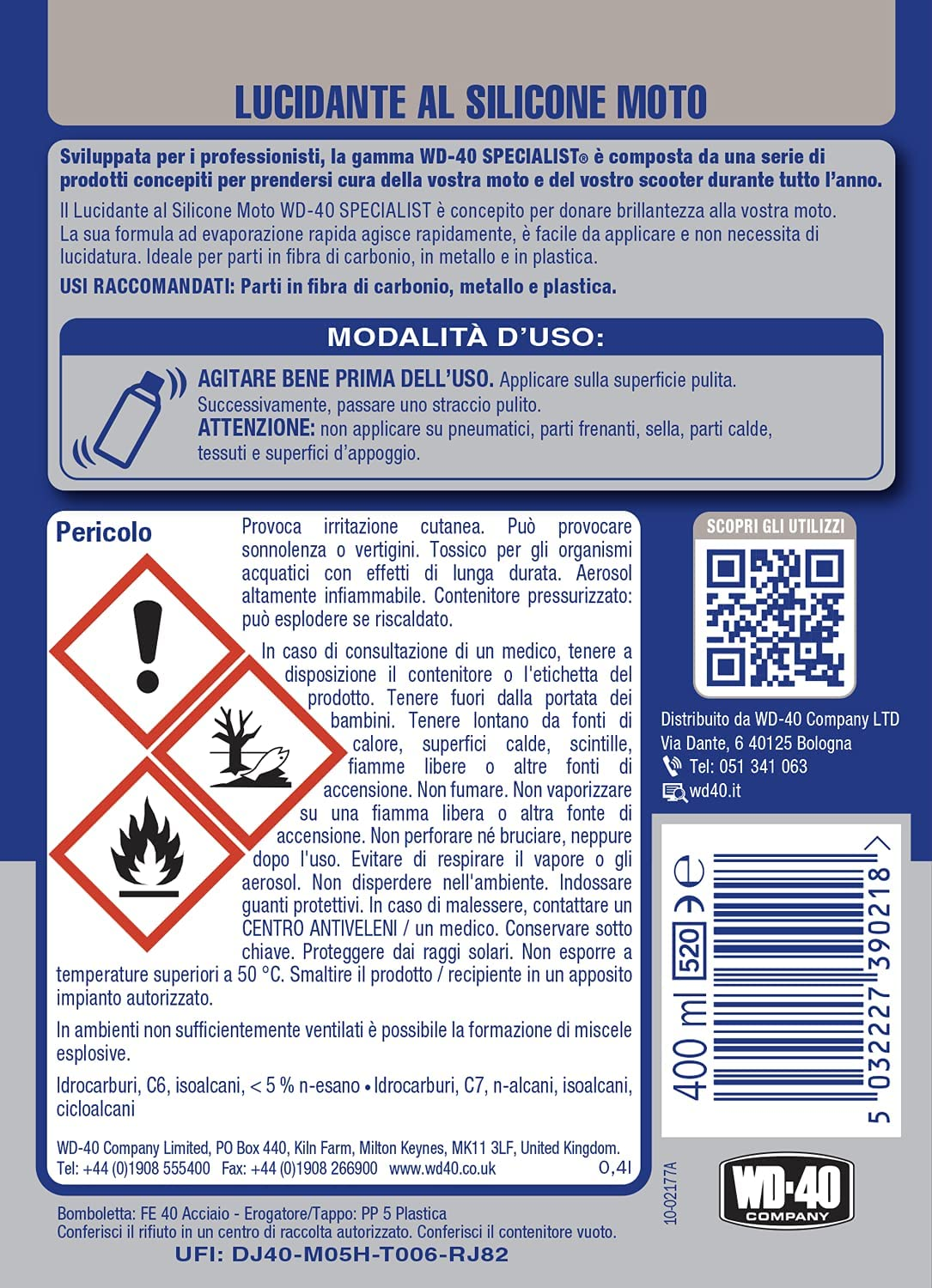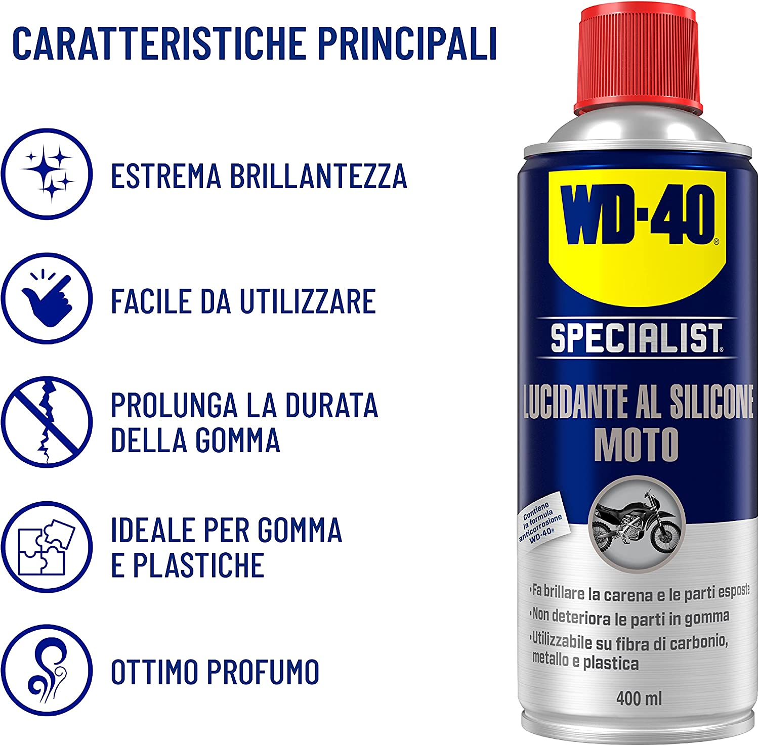 • CURA E MANUTENZIONE MOTO - La gamma WD-40 MOTO è stata ideata per garantire una perfetta manutenzione e cura della tua moto. La qualità e le prestazioni della gamma moto, sono state collaudate a lungo nelle competizioni motoristiche prima di essere riportate sui prodotti destinati all’utilizzo. I test in pista sono stati un aspetto fondamentale per lo sviluppo dei prodotti Specialist Moto