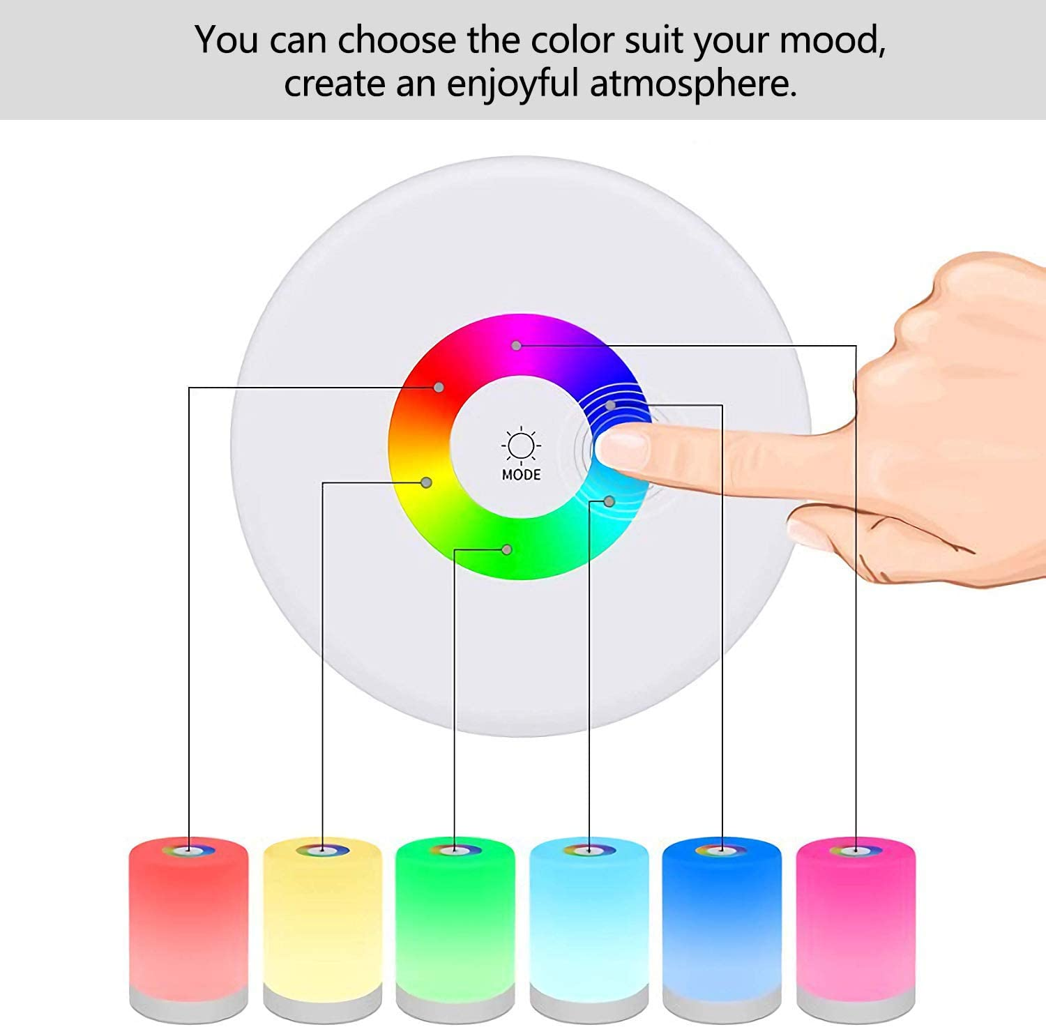 - 【Luminosité réglable et changement de couleur RVB】Touchez le panneau de commande pour activer 3 niveaux de luminosité de lumière blanche chaude. (Faible, moyen et élevé). Vous pouvez facilement changer le mode de couleur en touchant simplement le haut de cette lampe LED et elle fixera la couleur (rouge, vert, bleu, jaune, rose) que vous aimez. Il est confortable et douillet pour se reposer.
