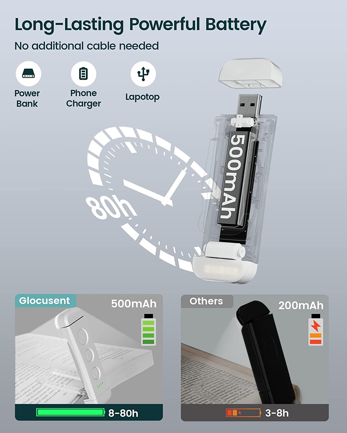 - 80 heures de lecture dans l'environnement le plus lumineux, lampe de lecture de livre parfaite pour la nuit
