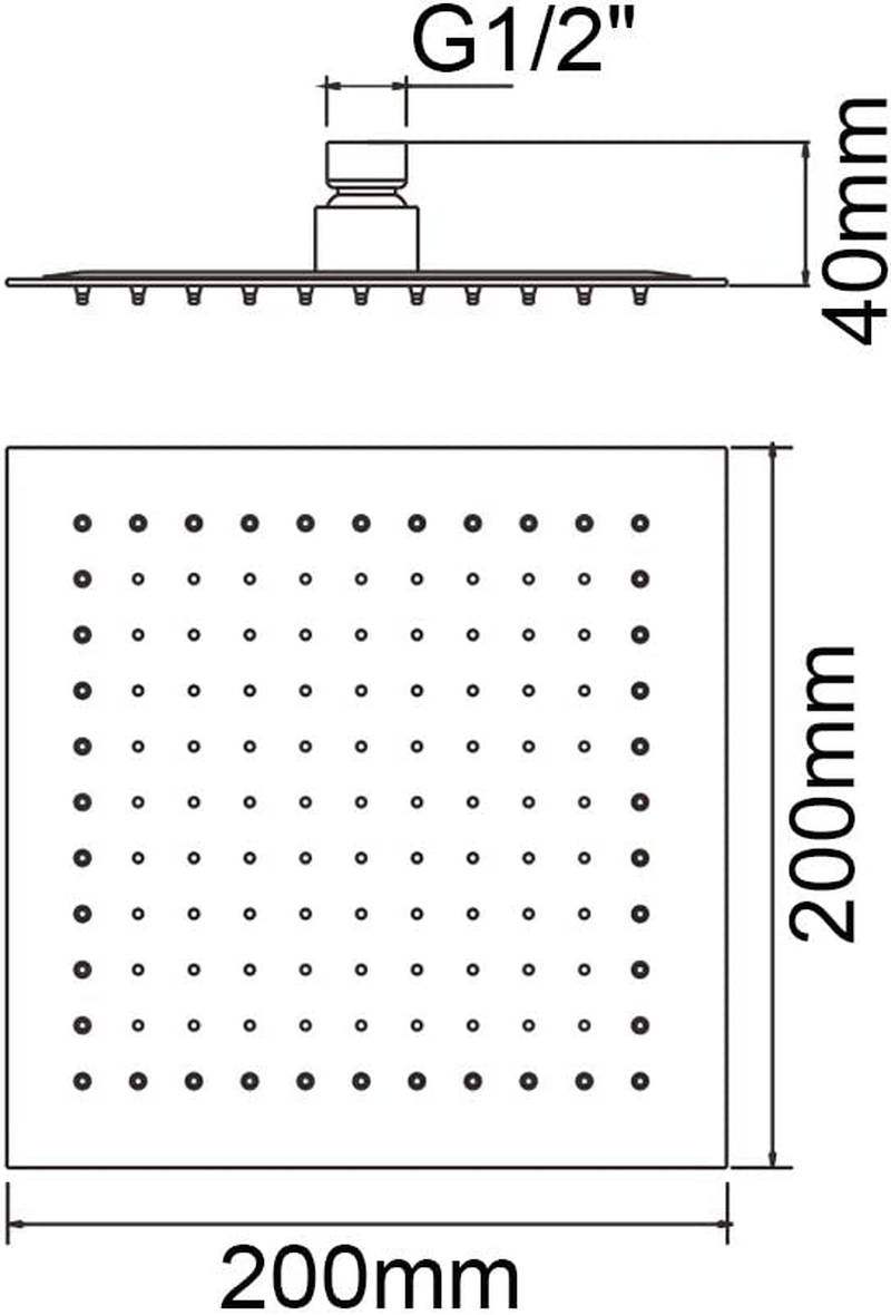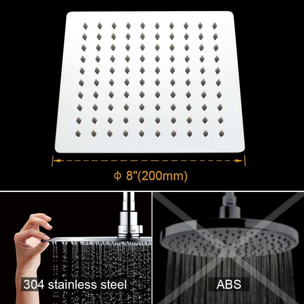 M20292 - Soffione Doccia a Pioggia, 20 X 20 CM, Docce Fisso Quadrato, Acciaio, C