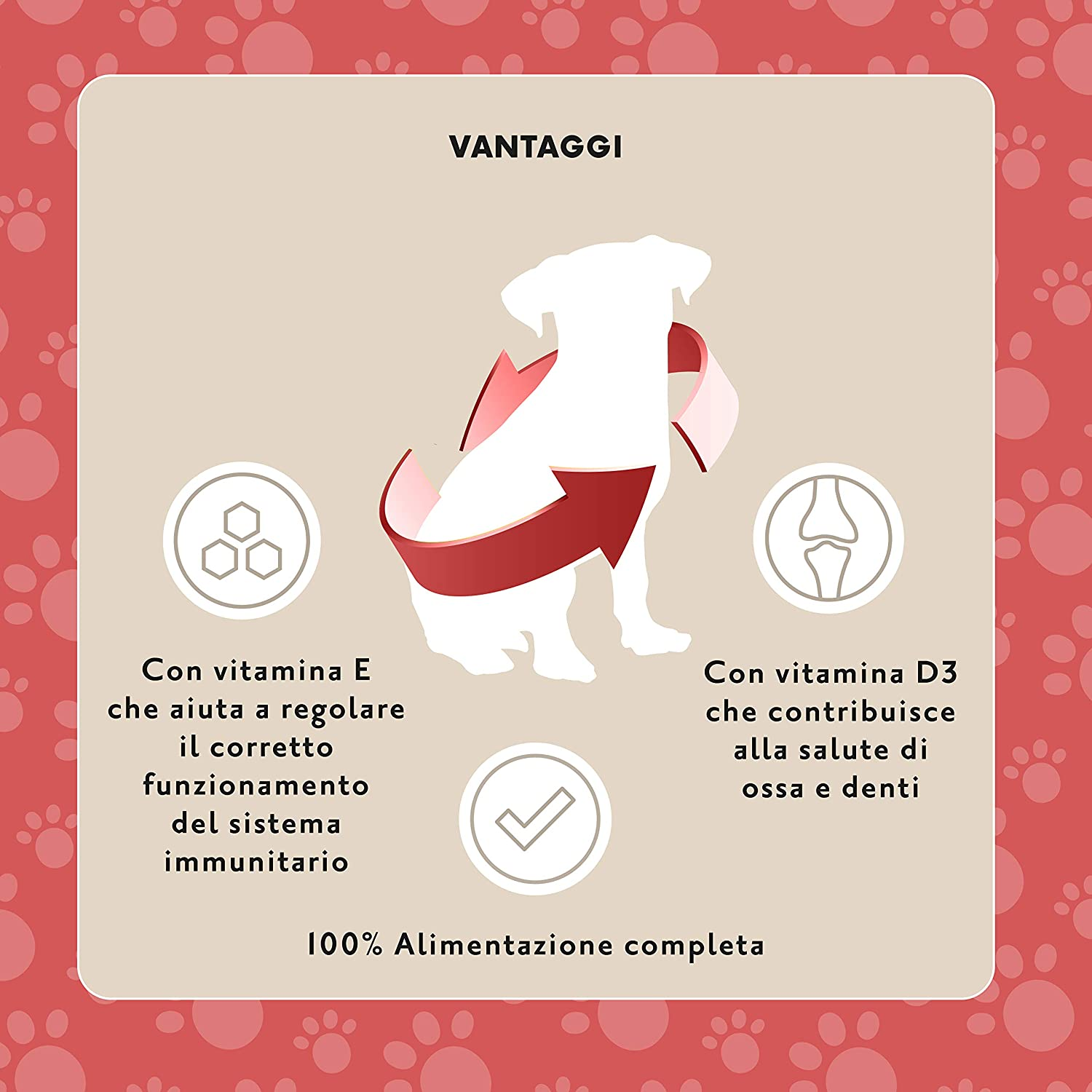 - Contiene tutte le vitamine e i minerali essenziali per la buona salute del tuo cane. Senza coloranti, conservanti e antiossidanti; senza soia, orzo e latticini aggiunti