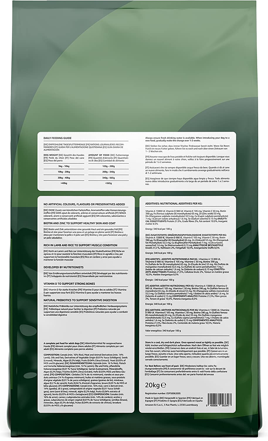 Marchio Amazon -  - Alimento Secco Completo per Cani Adulti Ricco Di Agnello E R
