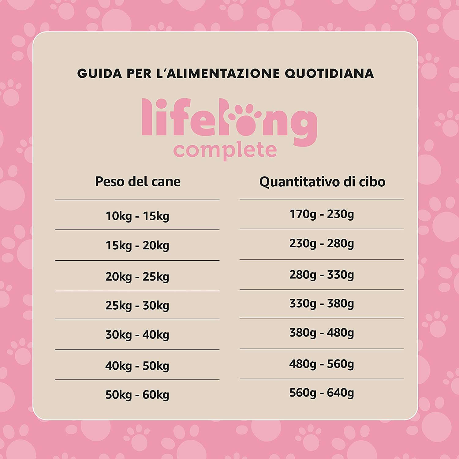 La guida, indicativa, al dosaggio quotidiano corretto è disponibile online e sulla confezione. Può necessitare di modifiche in base a età, stato di salute e attività fisica. Mantenere l’animale all’interno della fascia di peso adeguata alla razza.