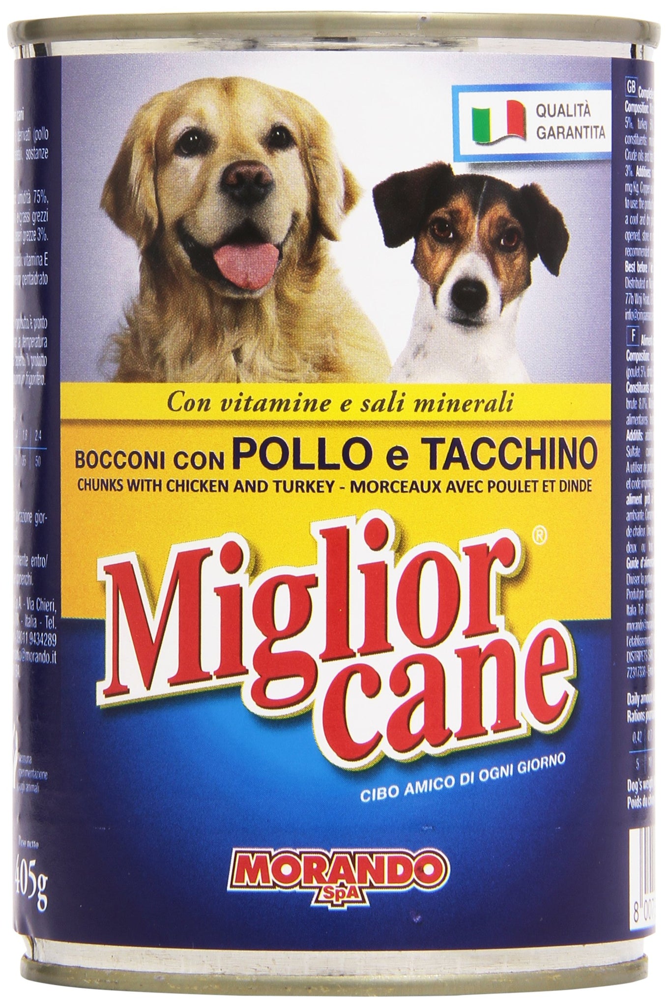 Migliorcane - Alimento Completo per Cani, Bocconi con Pollo e Tacchino - 12 latte da 405 g [4860 g]