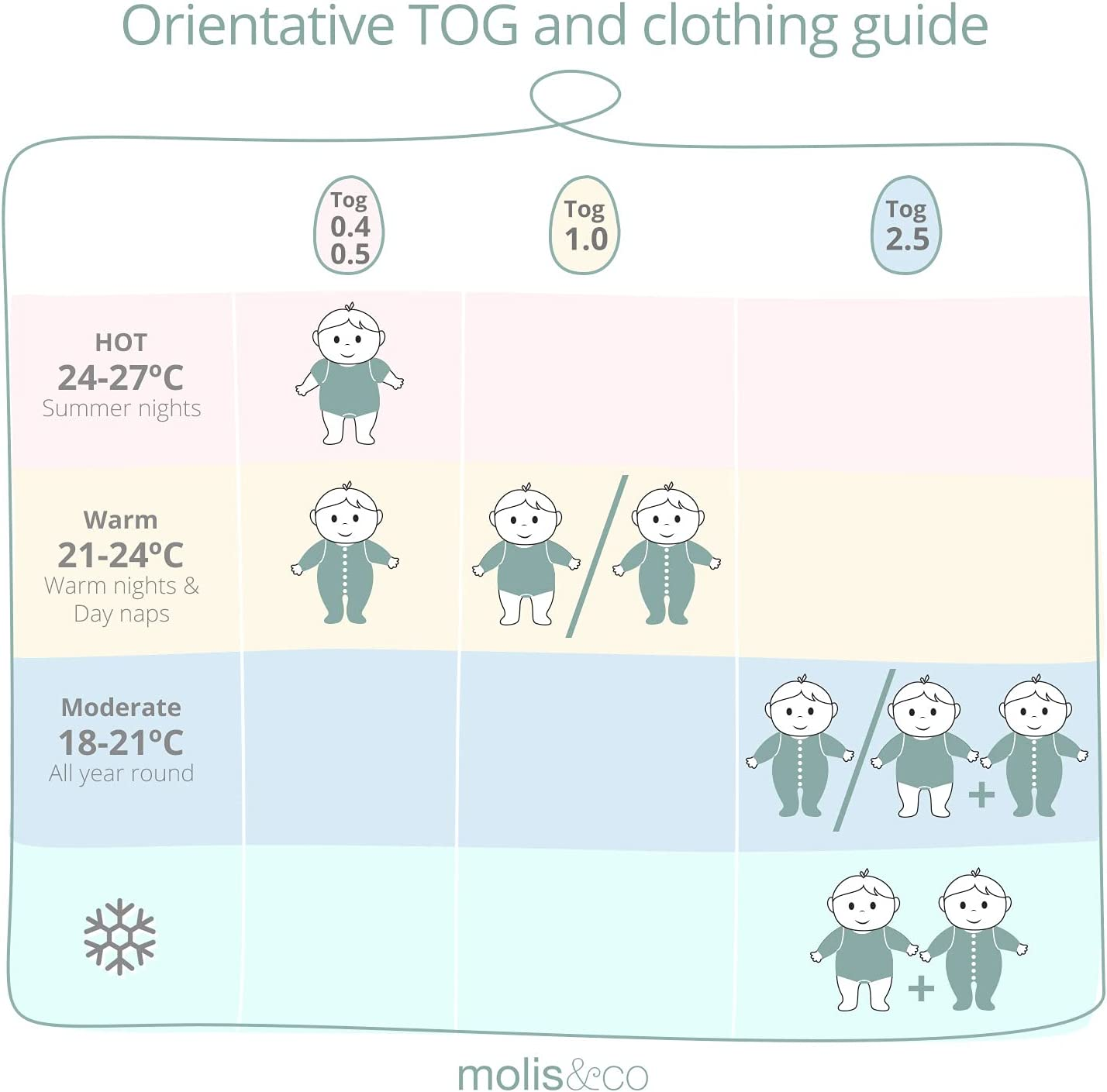 - ULTRA CHAUDE ET LÉGÈRE : Gigoteuse avec pieds ultra fraîche et légère pour nouveau-né fabriquée par moles&co. Idéal pour l'hiver et la mi-saison (TOG 2,5) ou dans les pièces dont la température est supérieure à 15°C. Sans manches. Si vous hésitez entre deux tailles, nous vous recommandons de choisir la plus petite.