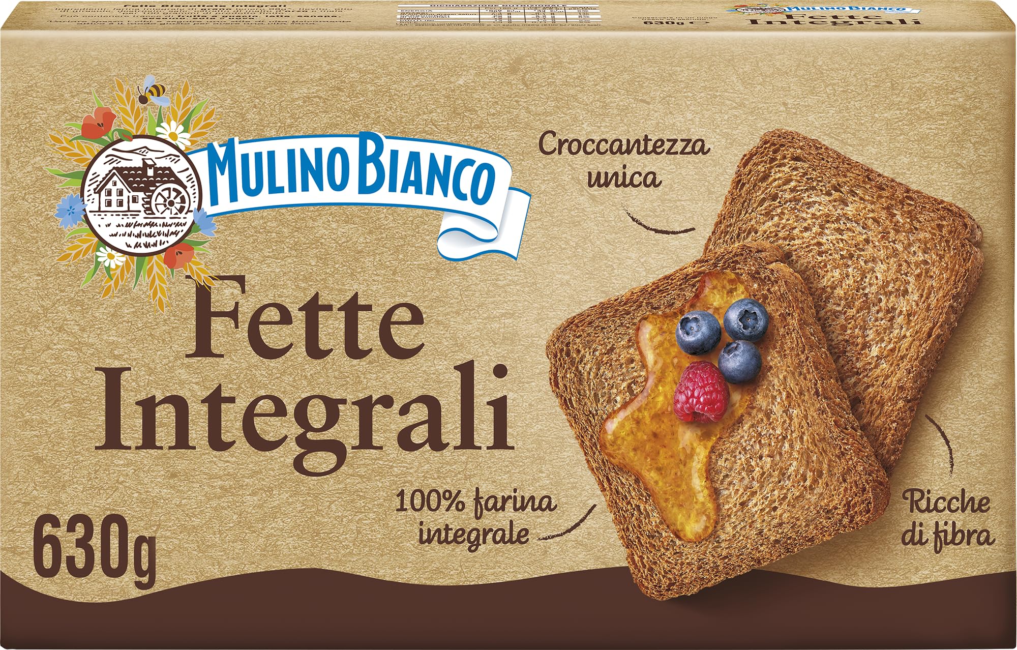 Mulino Bianco Fette Biscottate Integrali, Colazione Ricca di Fibre e Gusto, Senza Olio di Palma - 630 gr