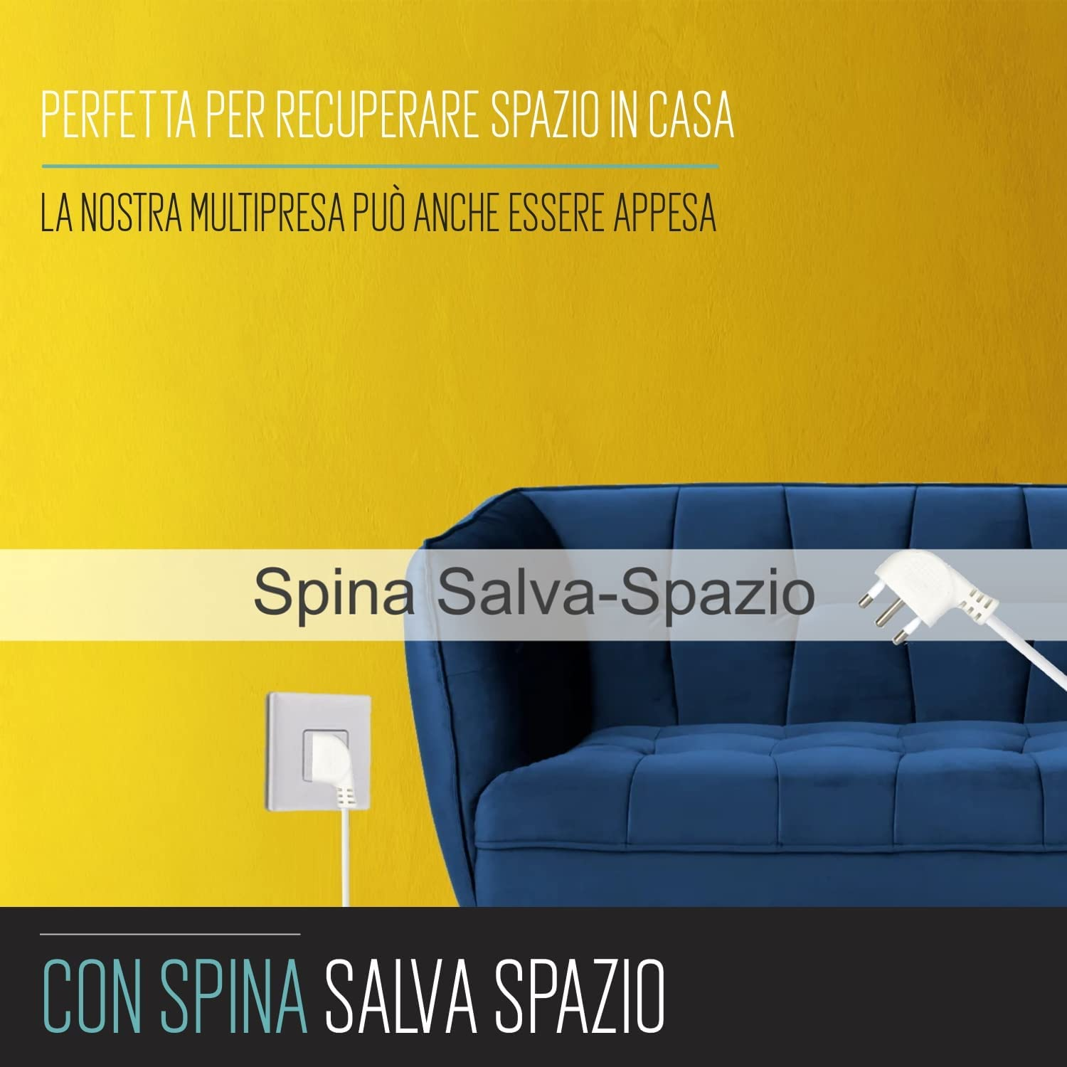 - Multipresa con 6 uscite prese di corrente Italiane 10A e Schuko (Tedesche). Le prese sono angolate a 45°.