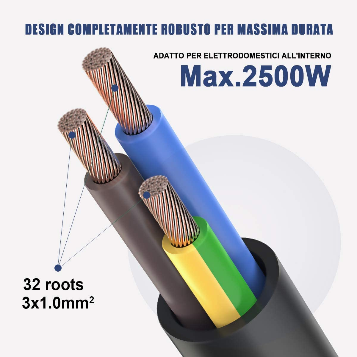 - Protezione sovraccarichi e sovratensione Oxide Varistor, cavo di alimentazione lungo 1,5 metri con spina Italiana 16A, cavo: H05VV-F 3G 1.0 mm2.