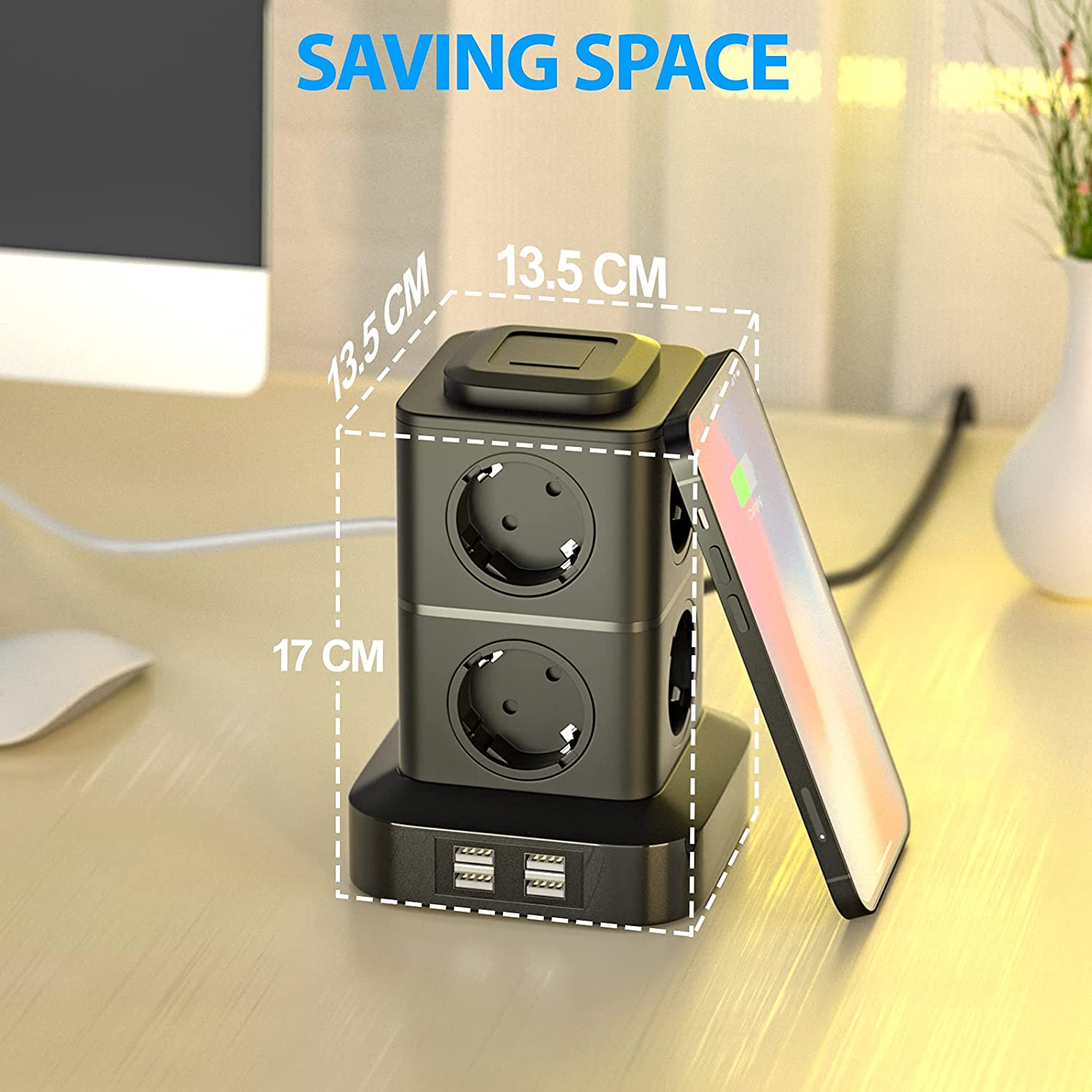 - 【Multi presa】La multipresa verticale ha 8 prese e 4 porte USB, che consente di caricare più dispositivi allo stesso tempo, design a torre, rispetto alla base tradizionale, la base verticale può risparmiare più spazio