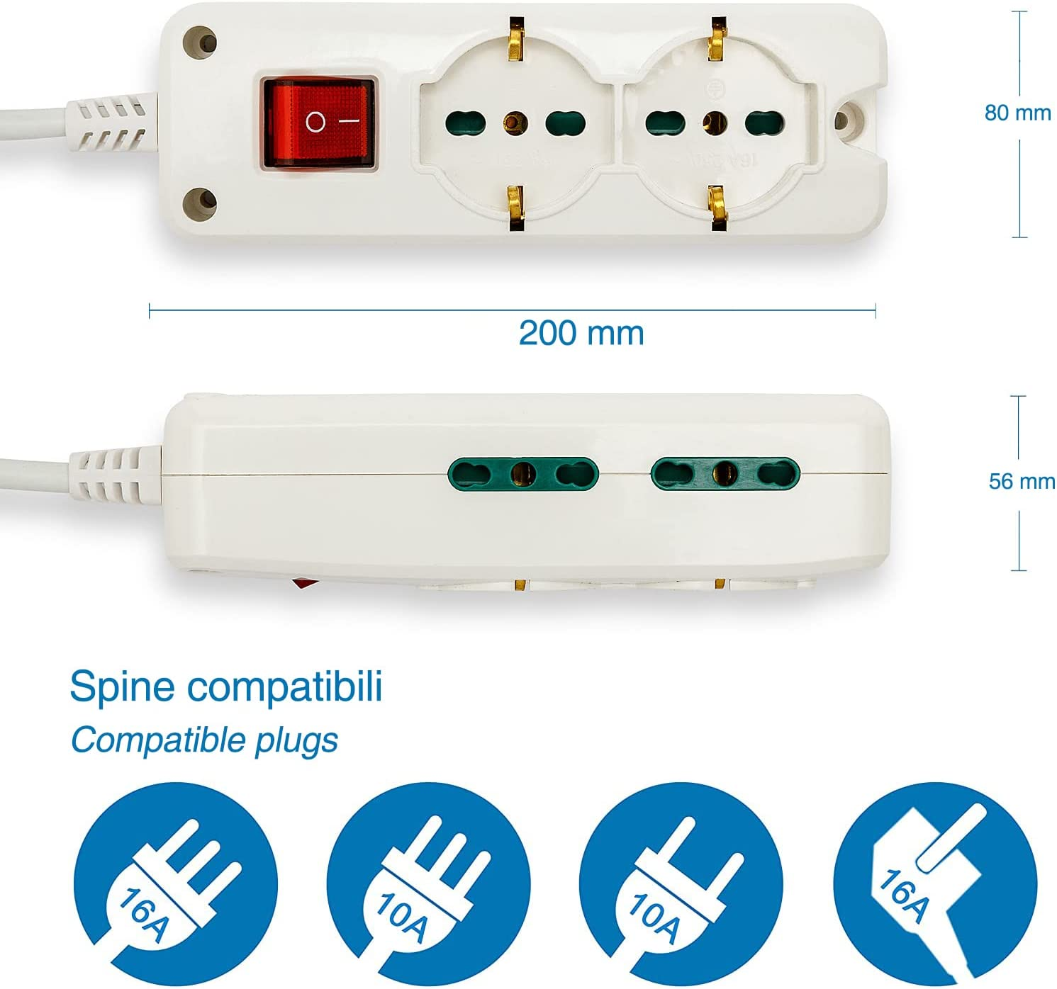 2 prese polivalenti schuko +16a +10a e 4 prese