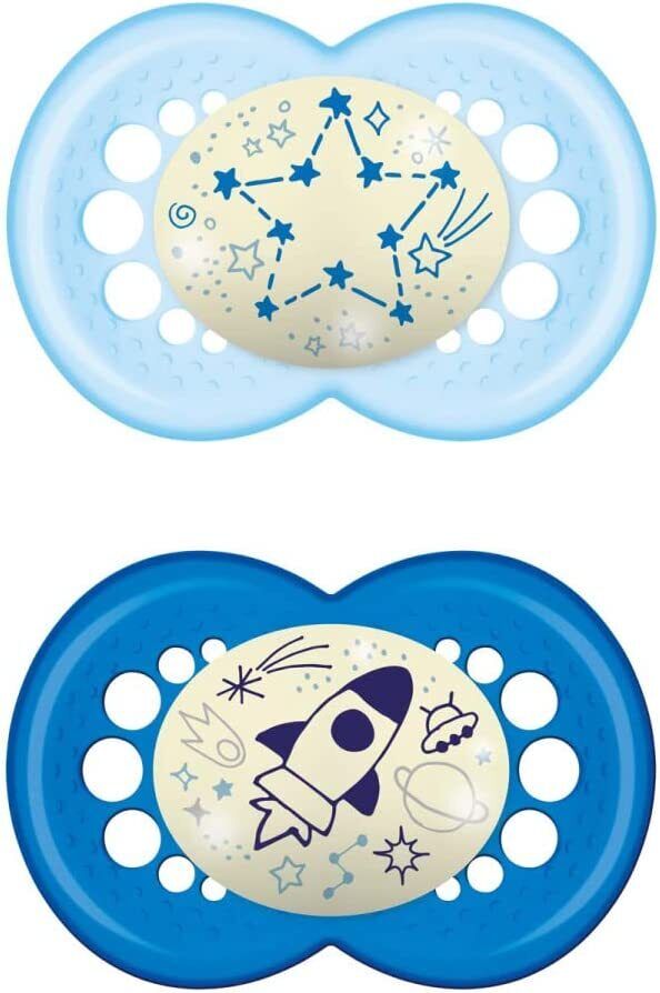 Sucette de nuit Mam originale - facilement acceptée par les enfants et facile à trouver dans l'obscurité lorsque les enfants perdent la tétine la nuit et que les parents doivent la chercher, une situation stressante est créée pour les deux. la tétine lumineuse pratique Mam Original Night s'allume dans l'obscurité. cette fonctionnalité facilite sa localisation par les enfants et les parents, garantissant ainsi une nuit paisible. la sucette en silicone est fournie avec une petite boîte pour le transport et la stérilisation. En plus de l'effet lumineux, la tétine offre de nombreux autres avantages. le masque et la tétine symétriques lui permettent de s'adapter parfaitement à la bouche de bébé. de plus, l'article est fabriqué en silicone skinsoft, un matériau particulièrement doux et moelleux qui est facilement accepté par 94% des enfants.* la tétine a une forme symétrique, grâce à laquelle la tétine restera positionnée de manière stable dans la bouche. le masque présente également de grandes ouvertures pour le passage de l'air, des micro-reliefs sur la partie interne et des bords arrondis, qui évitent les rougeurs et les irritations. le bouton a été conçu pour être saisi par de petites mains, mais en même temps il est si plat qu'il s'adapte à n'importe quelle position de l'enfant. La sucette Mam Night convient aux enfants âgés de 6 à 16 mois et est conforme à la norme EN 1400. De plus, il est évidemment exempt de BPA et de BPS. la couleur bleu clair des deux sucettes rend l'ensemble idéal pour les bébés de sexe masculin. détails du produit : lot de 2 sucettes de nuit mam original fournies dans une boîte pour le transport et la stérilisation brille dans le noir en silicone skinsoft, particulièrement doux s'adapte parfaitement à la bouche des enfants avec bouton plat couleur : bleu clair *étude de marché 2010-2019, auprès de 1 463 bébés testés.