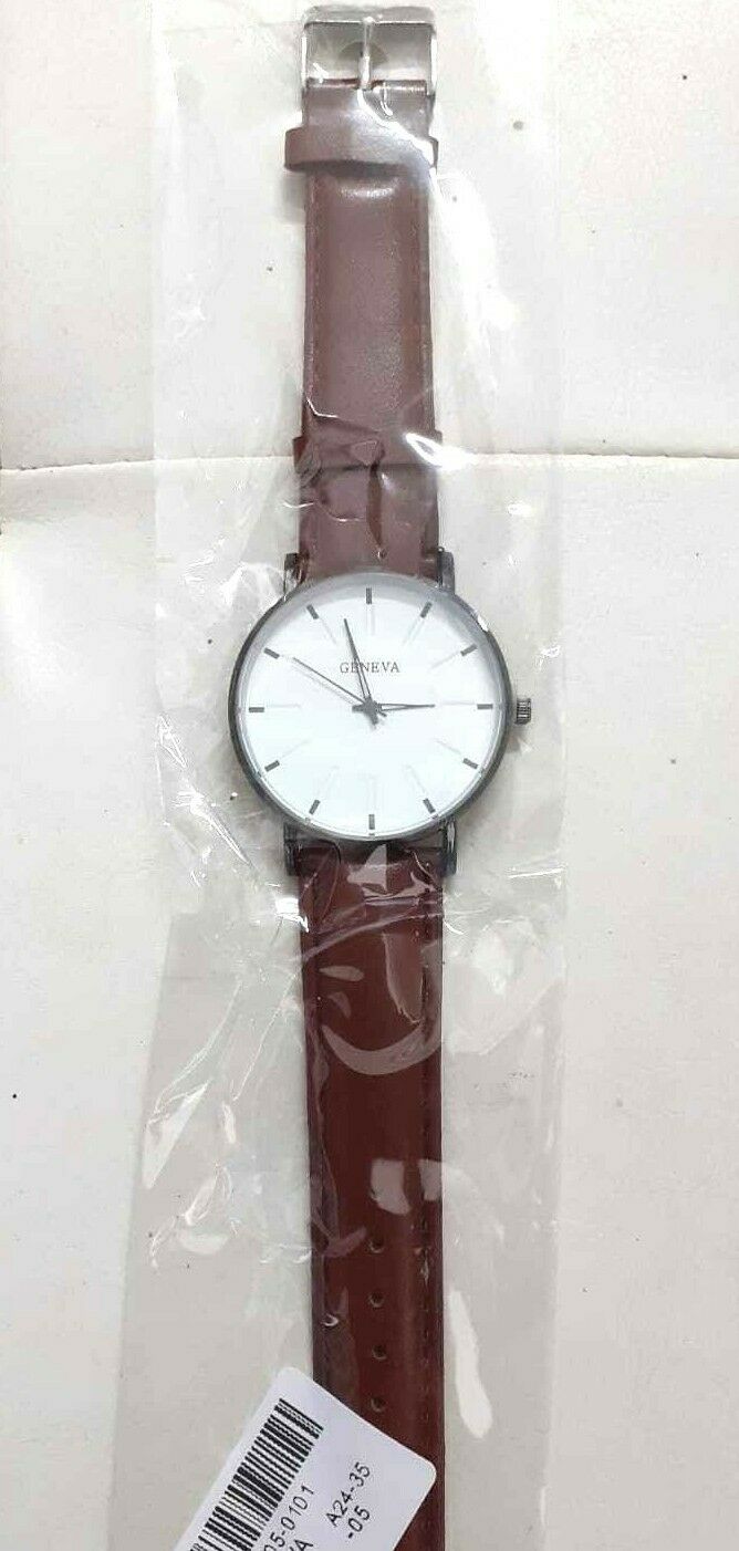 OROLOGIO GENEVA UOMO DONNA CINTURINO MARRONE