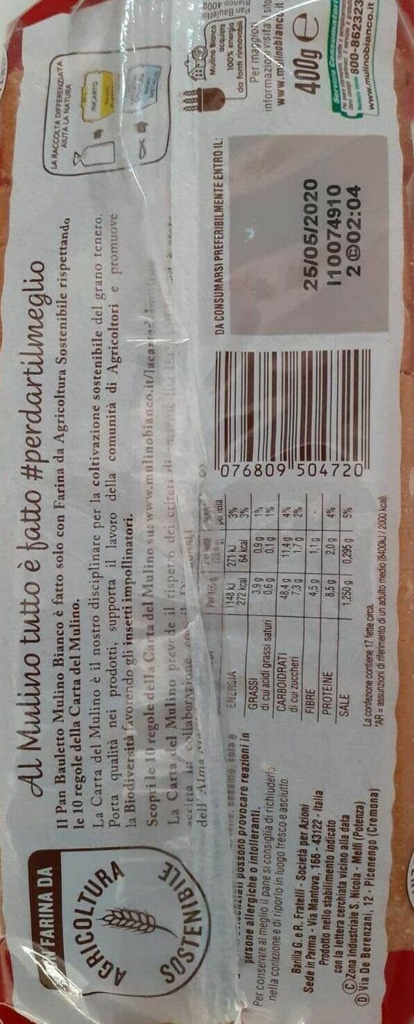 Pan Bauletto Bianco Mulino Bianco Confezione da 400 Grammi X 2 PEZZI 800 GR.