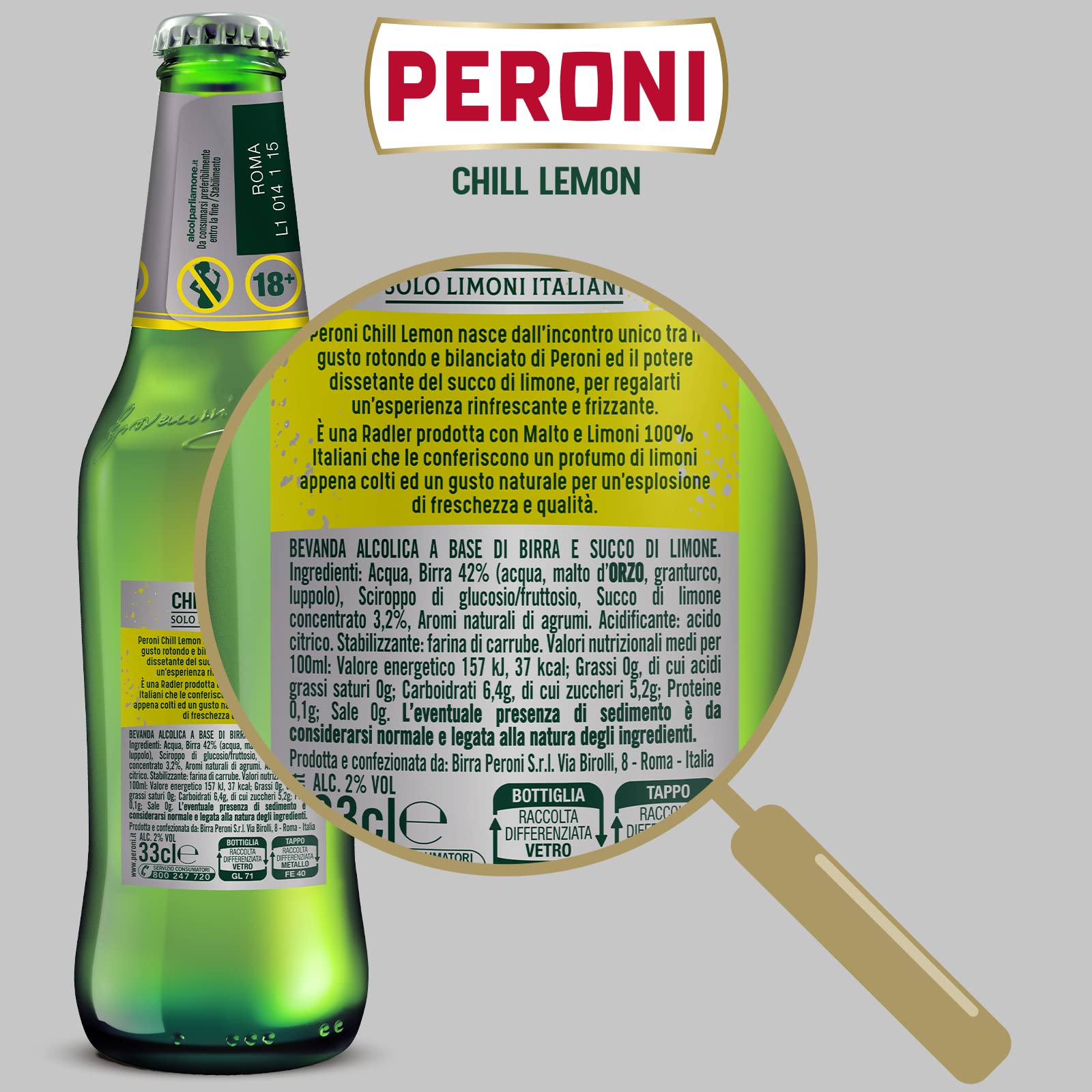 Peroni Chill Lemon Birra al Limone, Cassa Birra con 24 Birre in Bottiglia da 33 cl, 7.92 L, Birra Radler dal Gusto Naturale di Limoni Aspro e Bilanciato, Gradazione Alcolica 2% Vol