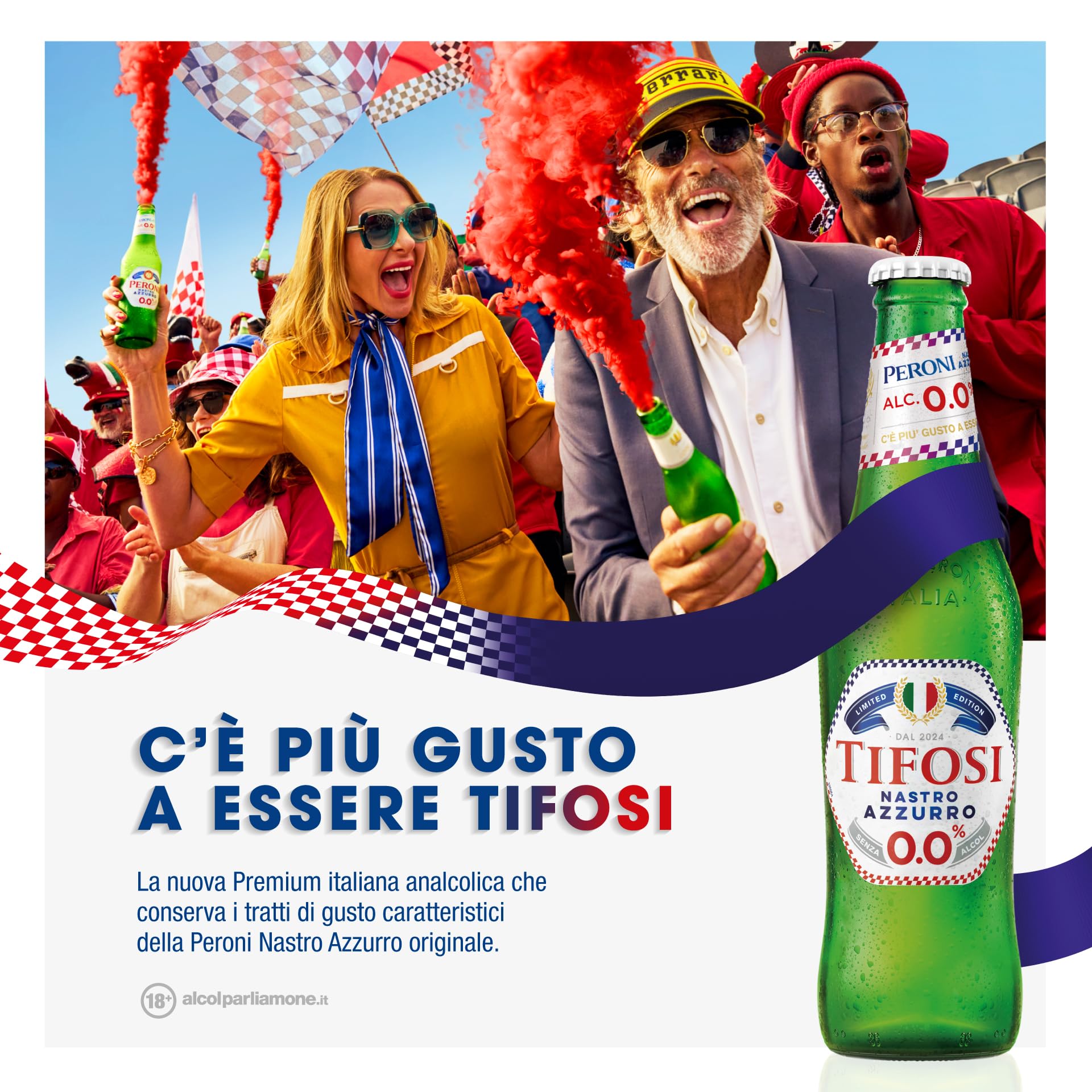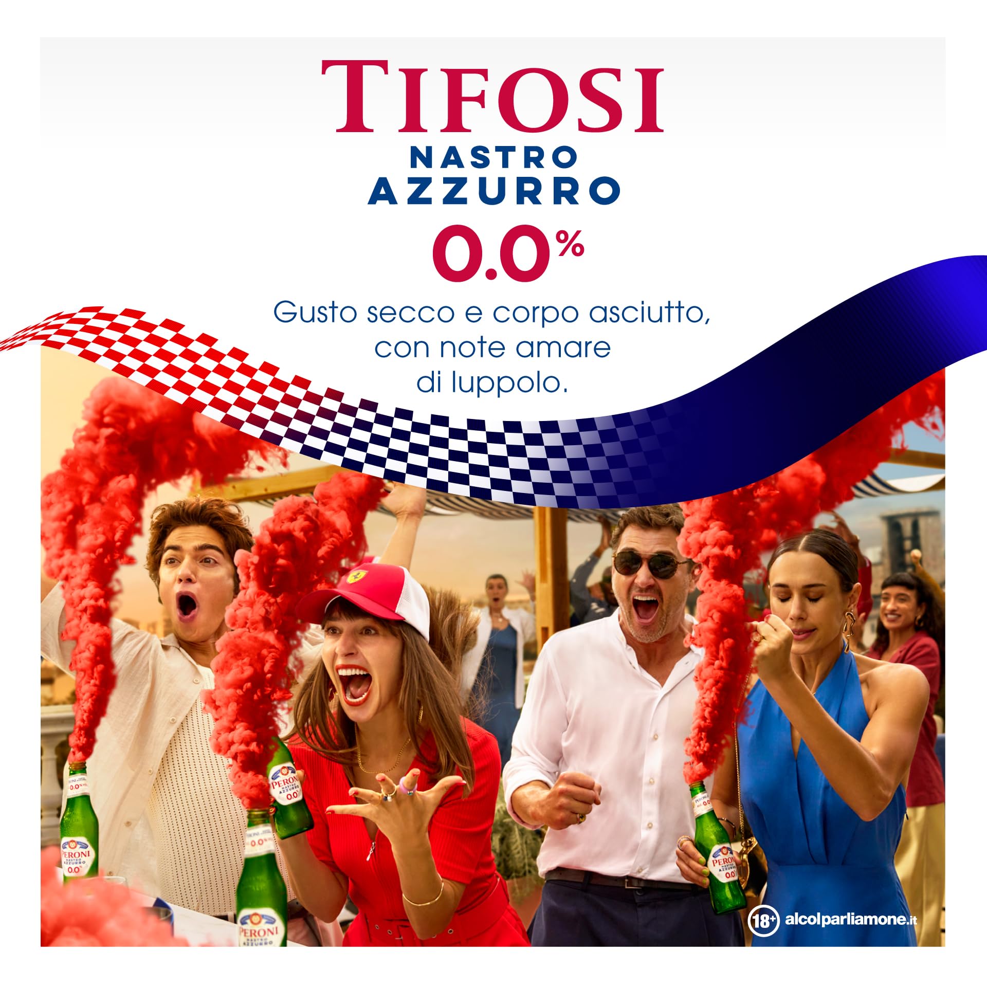 Peroni Nastro Azzurro 0.0 Edizione Speciale Tifosi Birra Analcolica Premium Lager, Cassa Birra con 12 Birre in Bottiglia da 33 cl, 3.96 L, Gusto Secco e Rinfrescante, Zero Alcol