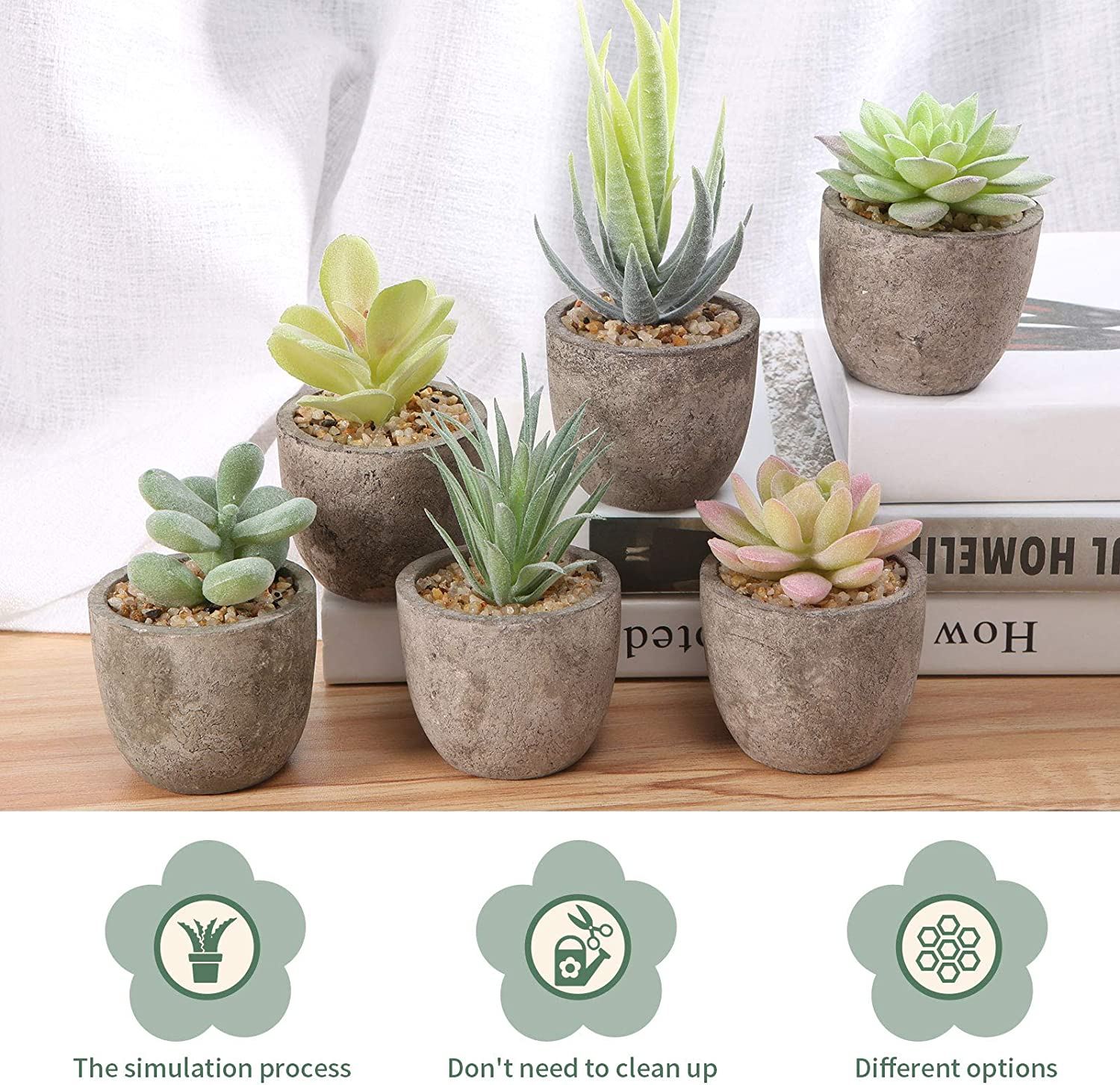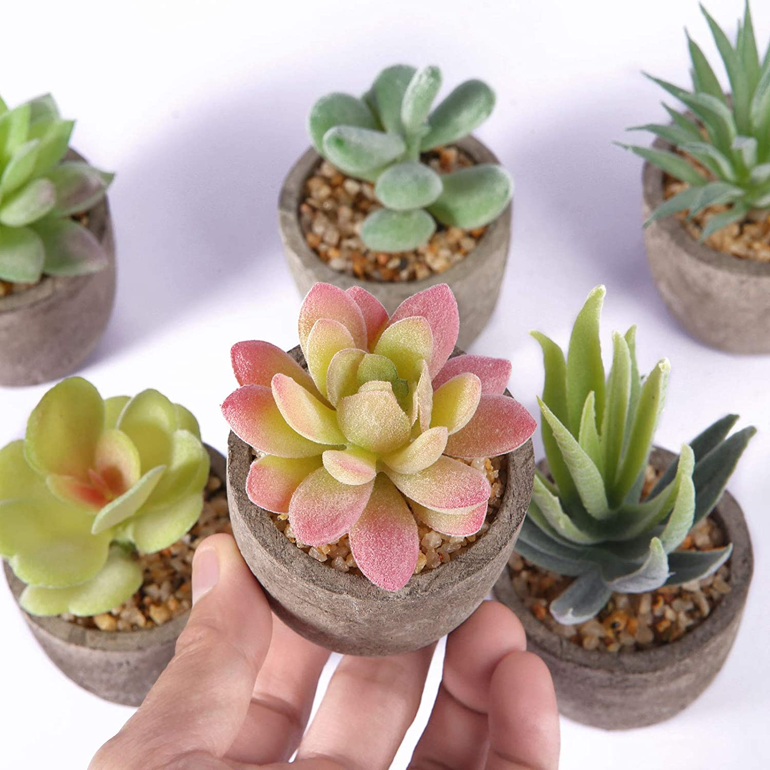 Pflanze Kunstleder, 6 Stücke Fälschung Kunstpflanze Sukkulenten IN Topf A