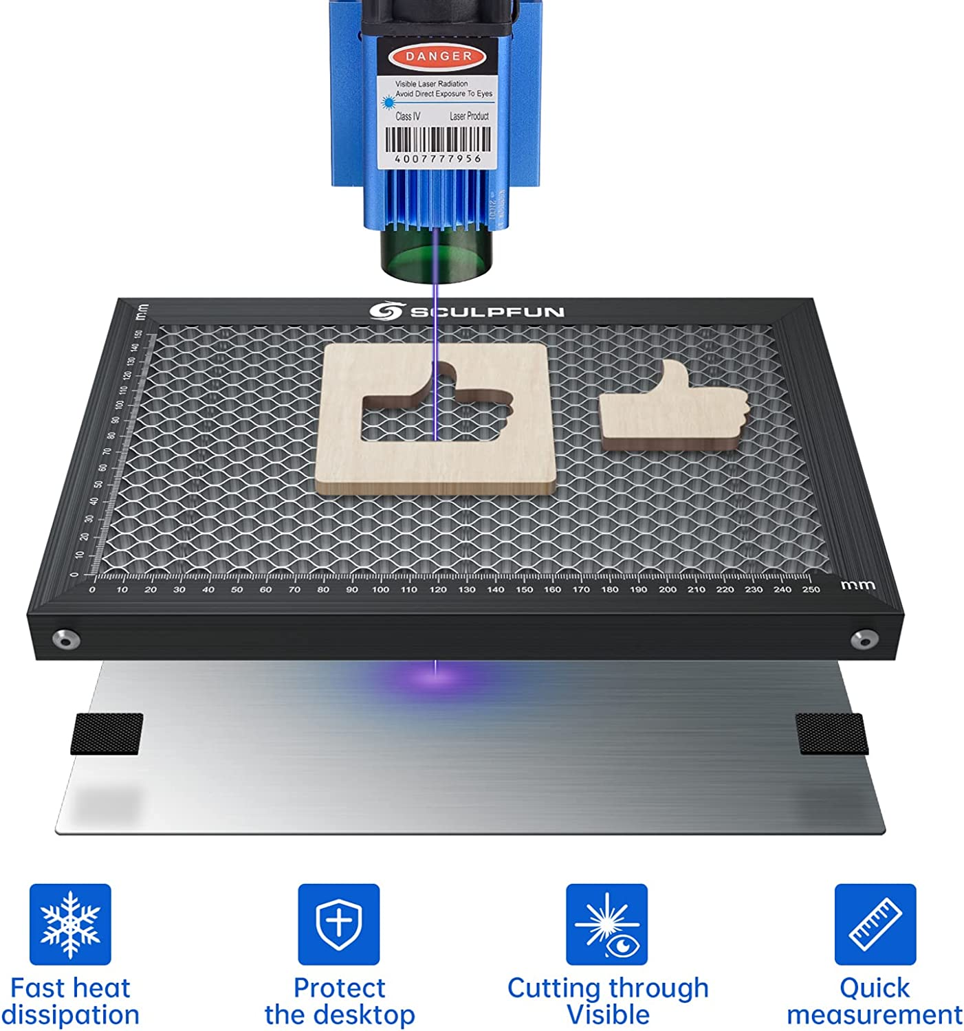 Sichere Metall-Desktop-Schutzplatte: Die Wabenplatte ist mit einer Metall-Desktop-Schutzplatte ausgestattet, die den Tisch vor Laserschäden schützen kann, was sich sehr gut für kleine DIY-Diodenlaser eignet.