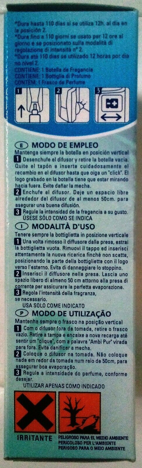 Profumo Ambipur casa aqua ricarica 20 ml. x 6 pezzi RINFRESCANTE PIOGGIA ESTIVA FRESCHEZZA DA 80 A 110 GIORNI Marca: Ambipur Quantità: 1 Articolo modificato: No EAN: Non applicabile