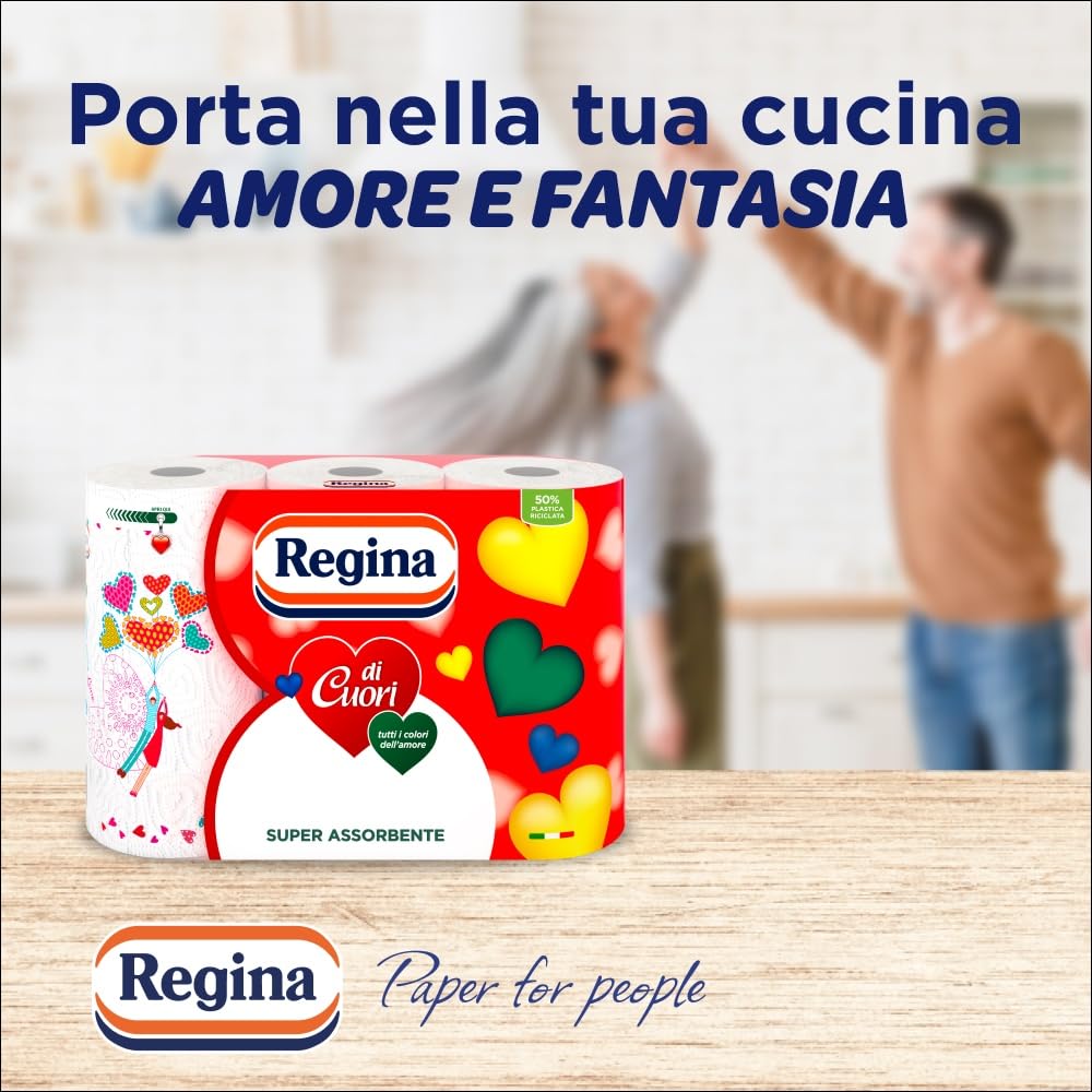 Regina di Cuori Carta Cucina | Confezione da 30 Rotoli a 2 veli | 50 fogli per rotolo | Grande Assorbenza, Spessa e Resistente | Carta 100% certificata FSC®
