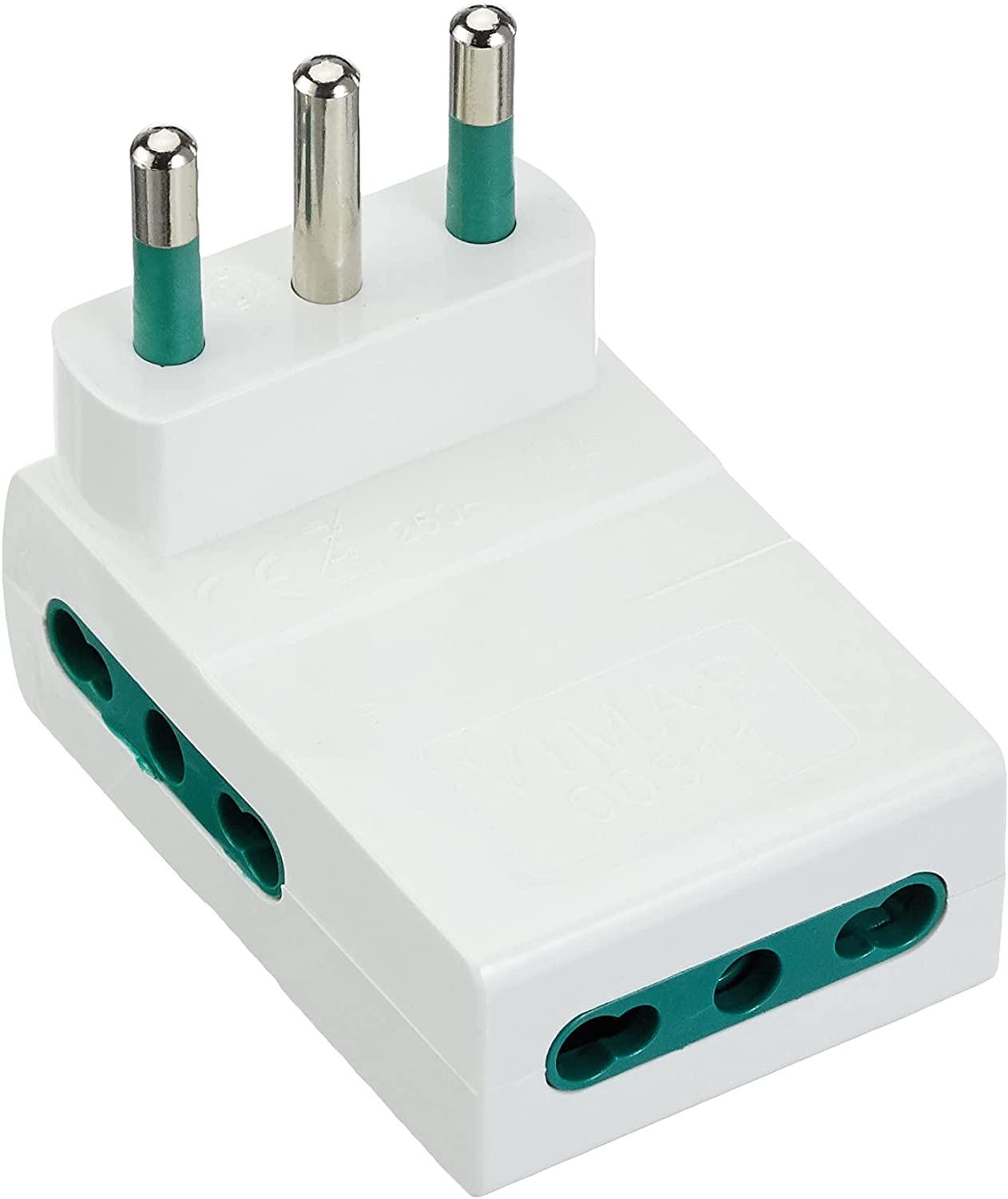 - Vimar ri.00311.b adattatore multiplo salvaspazio sicury 250 v, bianco - max 1500 w, spina 2pt 16 a standard italiano tipo s17, tre bpresa 2pt 16 a standard italiano tipo p17/11