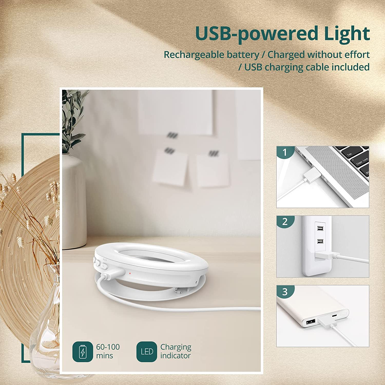 - [Batterie rechargeable] La lampe selfie du téléphone est chargée avec un câble USB inclus, la batterie dure environ 1,5 heure après la charge. Vous pouvez également l'utiliser pendant le chargement. Il dispose d'un revêtement anti-rayures pour protéger l'objectif de votre téléphone.