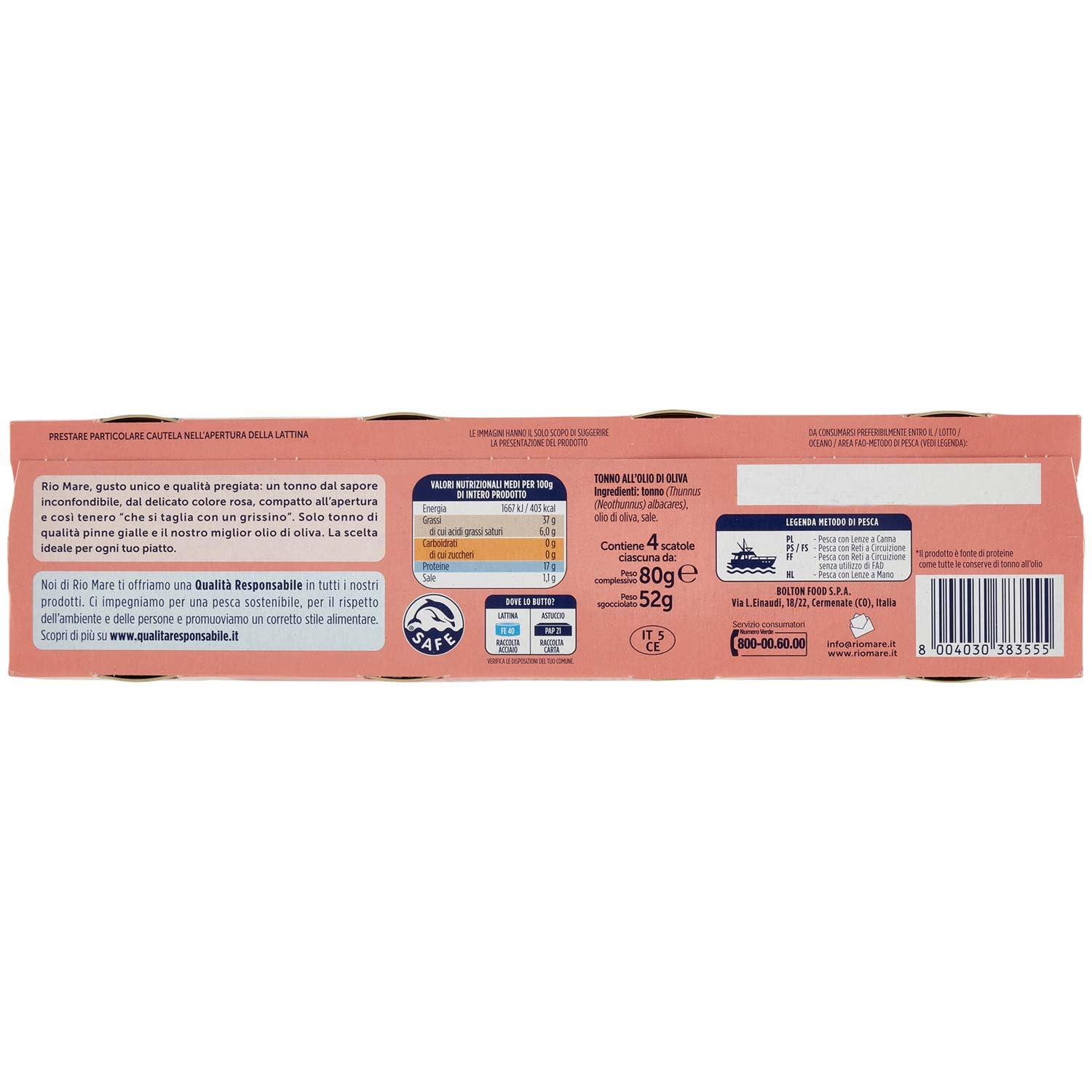 Rio Mare - Tonno all'Olio di Oliva, Qualità Pinne Gialle, 4 Lattine da 80g