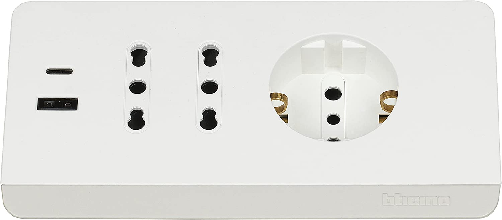 - Multipresa con 2 prese bipasso 10 o 16A ed 1 presa standard tedesco con alveoli protetti, 250 V, 2.500 W
