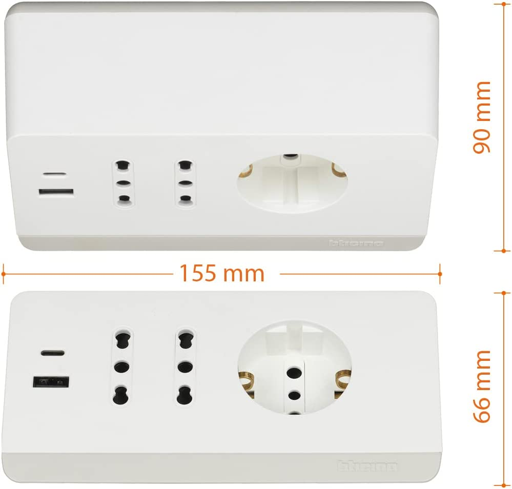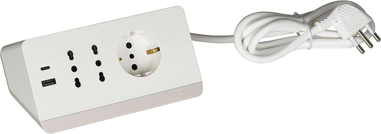 Interrupteur de sécurité automatique SAFE qui vous permet de consommer jusqu'à 2 500 W ; en cas de surcharge, l'interrupteur intervient automatiquement, coupant l'alimentation électrique, dispositif qui peut être réinitialisé après quelques secondes Equipé d'une petite fiche 10A peu encombrante, ce qui rend le produit compatible avec tous les types de prises du marché italien sans avoir besoin d'adaptateurs Excellent design, il s'adapte parfaitement aux nouveaux besoins de travail, aussi bien à la maison qu'au bureau. Sécurité offerte grâce à l'interrupteur de protection SAFE et à 2 ports USB pratiques de type A et C pour charger les appareils électroniques. Grâce à la petite fiche de 10 A, il est compatible avec tous les types de prises du marché italien sans avoir besoin d'adaptateurs