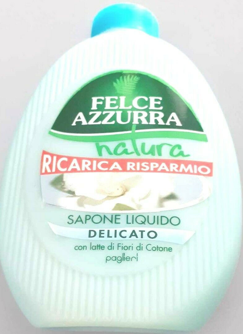 Sapone Liquido Felce Azzurra natura ricarica ml. 300 x 5 pezzi IN TOTALE LITRI 1,5 DI SAPONE Marca: Felce Azzurra Articolo modificato: No Quantità: 1 EAN: Non applicabile