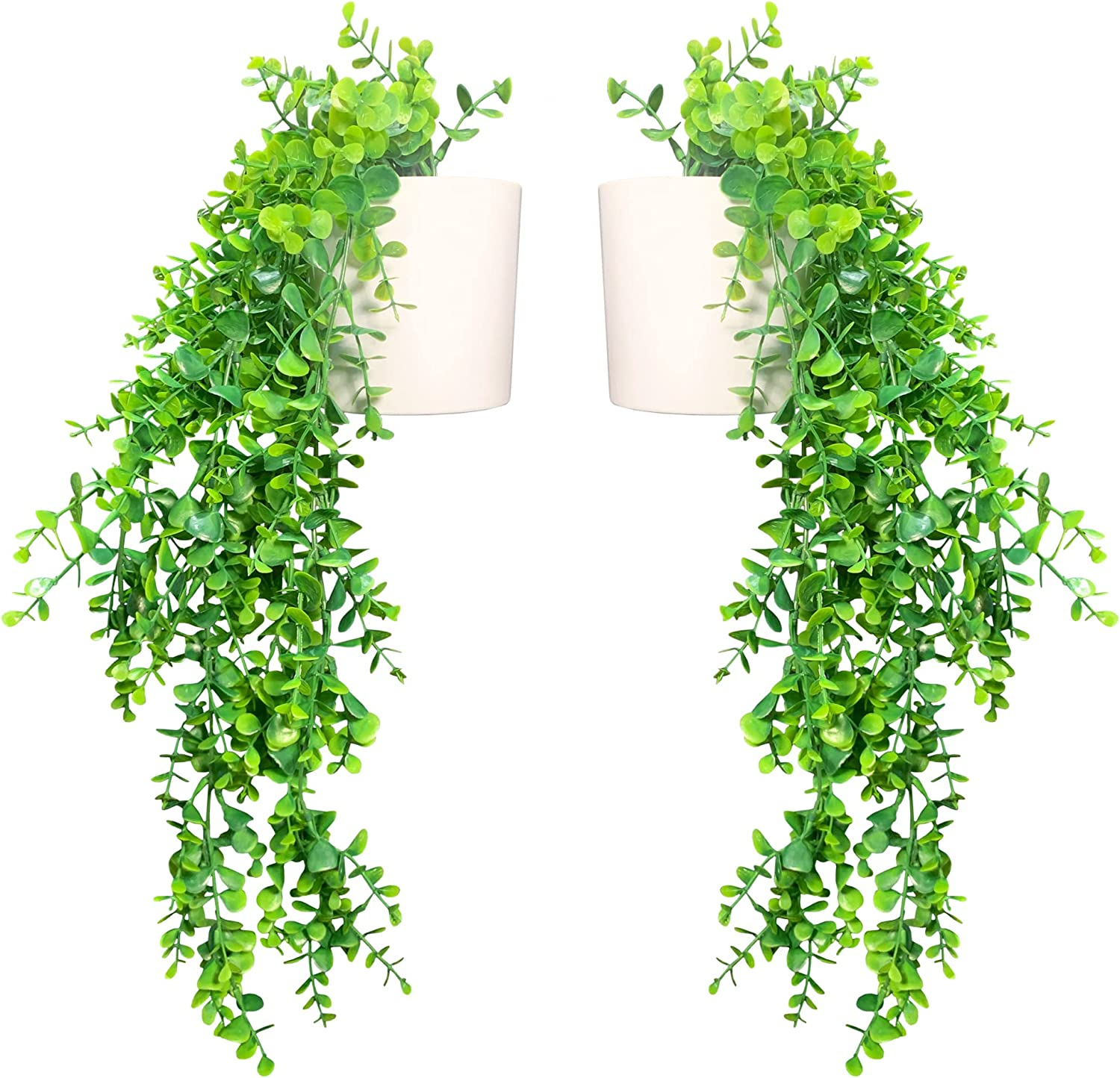 - ✔ Passend für jeden Wohnstil: Unser Set aus 2 grünen Hängepflanzen im Eukalyptus-Stil mit weißen Töpfen verleiht Ihrem Zuhause die Farbe und Lebendigkeit, die Sie suchen. Gleichzeitig passen unsere hängenden künstlichen Zimmerpflanzen zu jeder Art und jedem Stil von Möbeln.