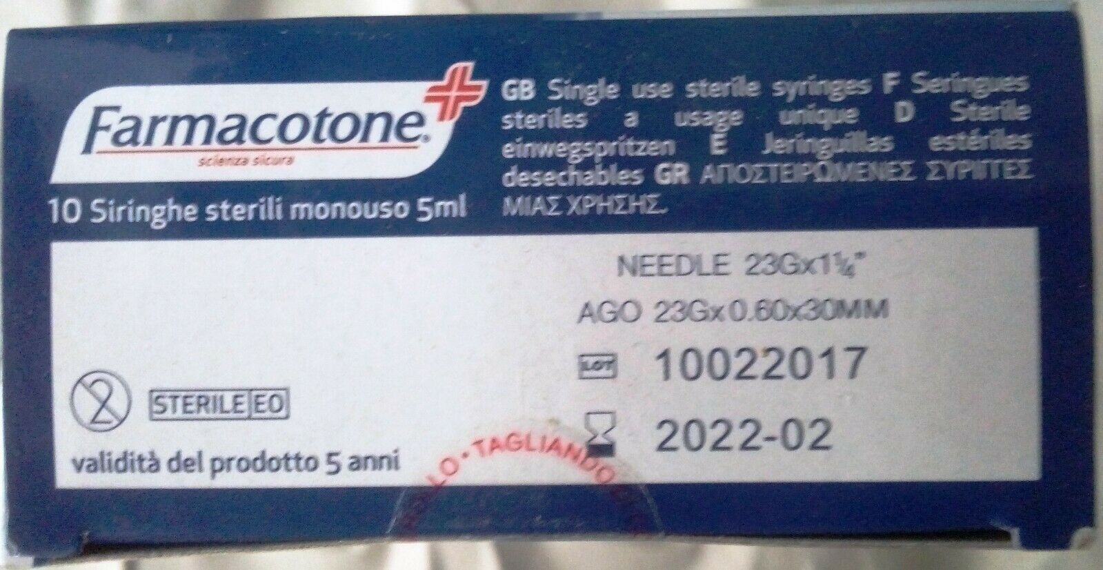 Siringhe Farmacotone ml. 5 X 10 siringhe x 6 confezzioni