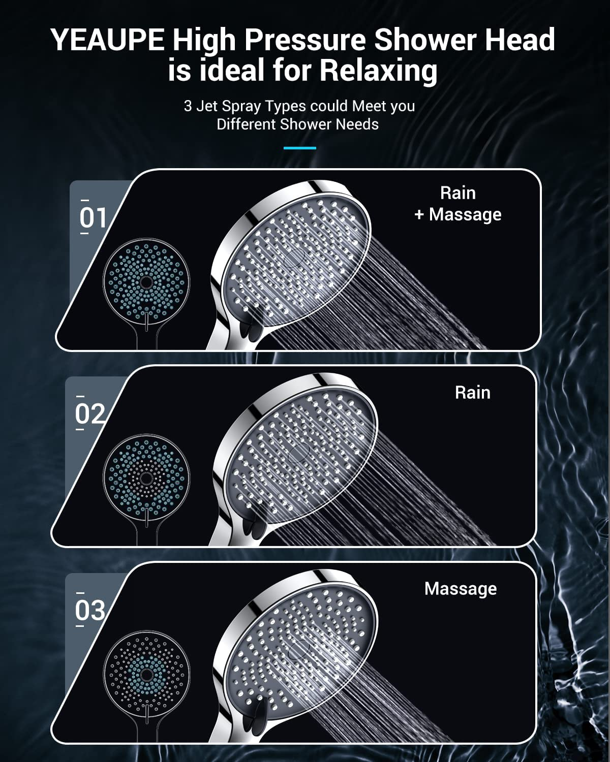 - Soffione doccia risparmio acqua: le docce YEAUPE con tecnologia di risparmio idrico (limitatore continuo) richiedono fino al 40% in meno di acqua rispetto ai prodotti tradizionali - senza perdita di comfort.