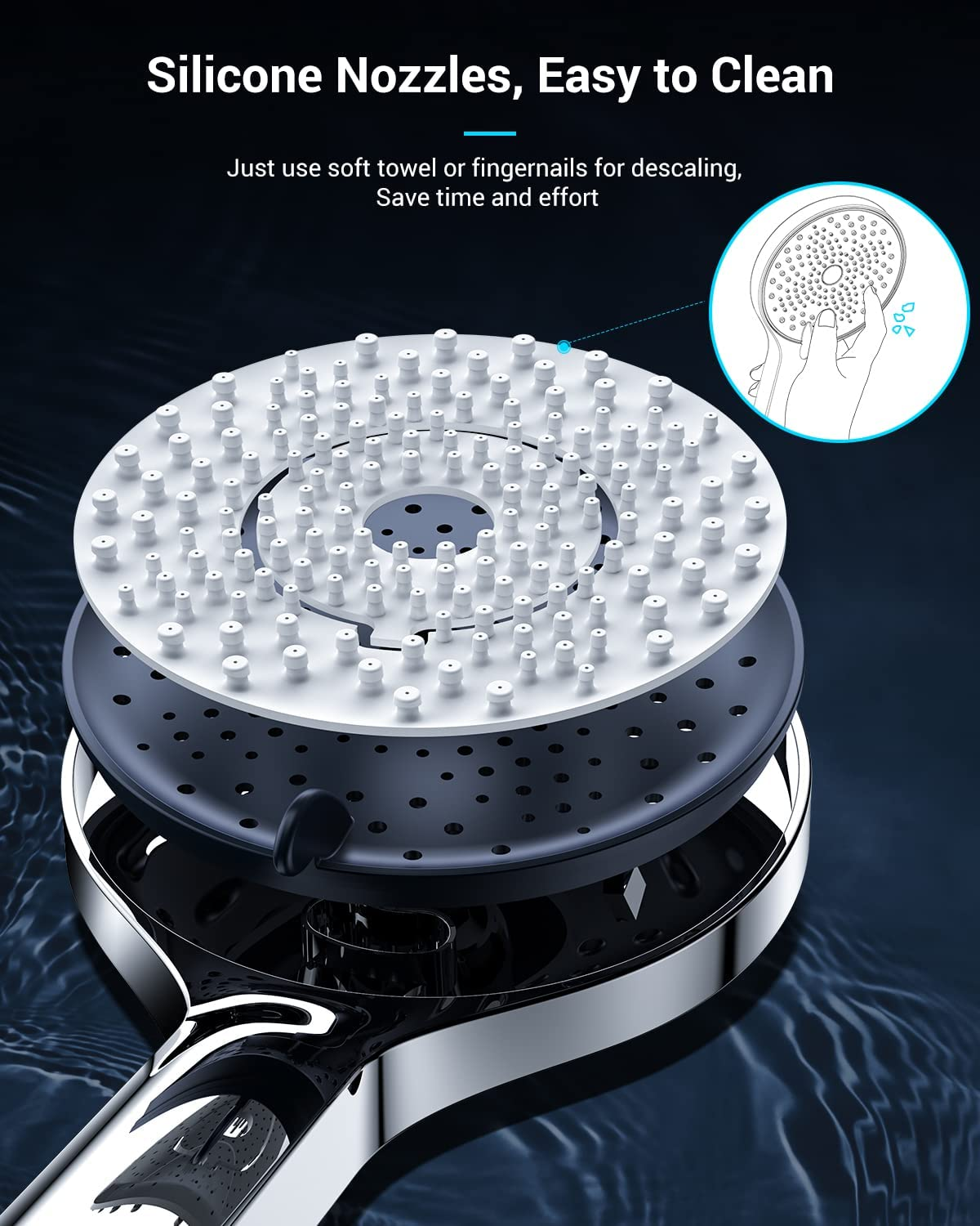 - Pulizia rapida: gli ugelli in silicone anticalcare hanno una buona elasticità e resistenza all'usura e funzione anti-caling. In questo modo si può facilmente graffiare i residui di calcare con il dito.