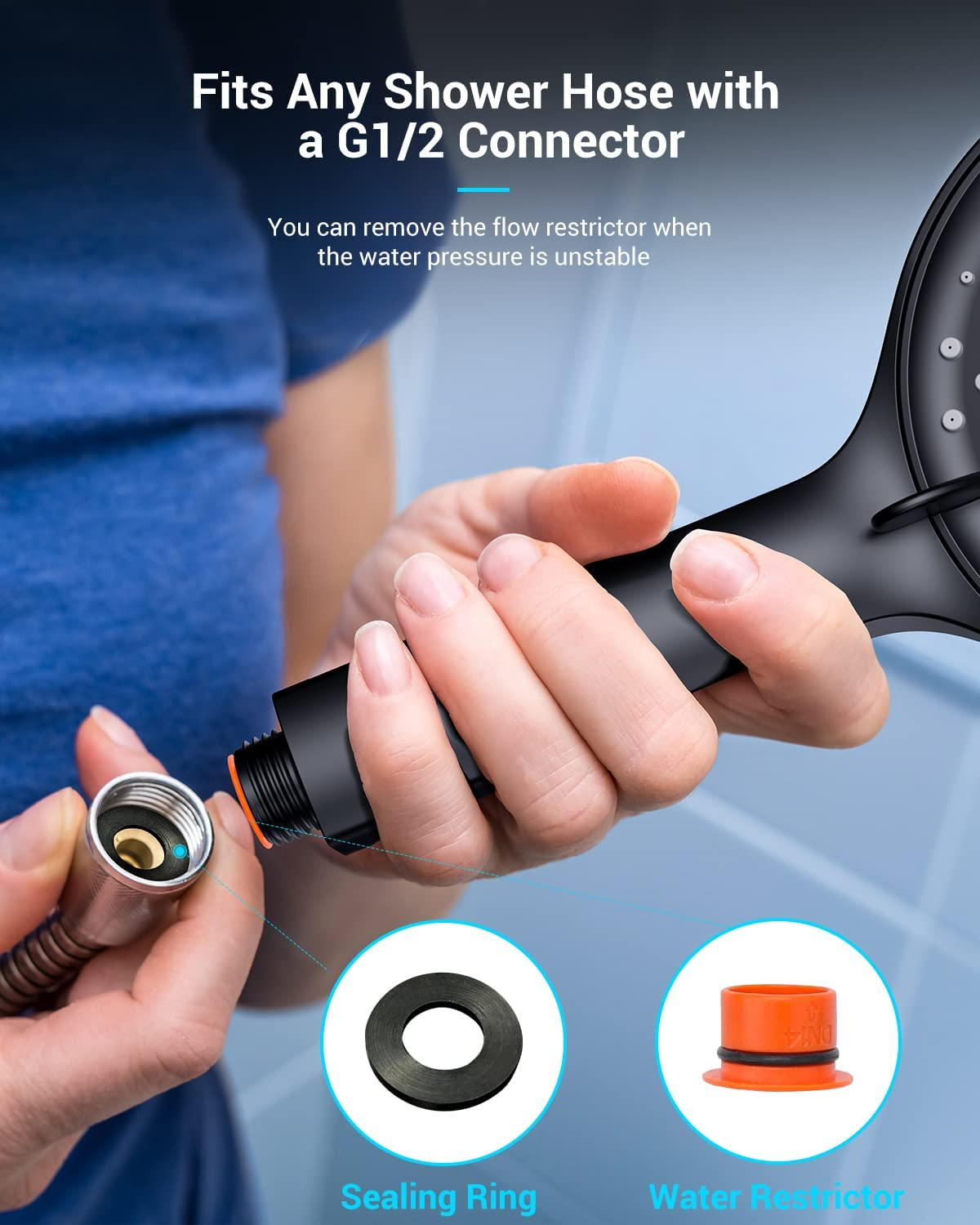 - Adatto per scaldabagno istantaneo: questo soffione doccia è versatile. Basta avvitare sul raccordo standard del tubo della doccia (misura G ½).