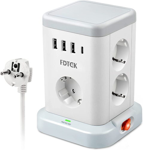 Ciabatta Elettrica, Torretta Multipresa Con 7 Prese E 3 Porte USB-A & 1 Tipo C,