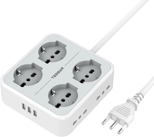 Ciabatta Multipresa Con USB, Multipresa Elettrica Con 4 Schuko E 4 Bivalenti 10A
