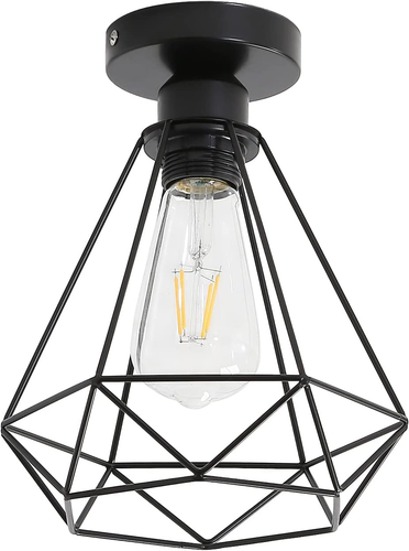 Deckenleuchte Industriell Vintage, Leuchter Metall Käfig Diamanten Federung