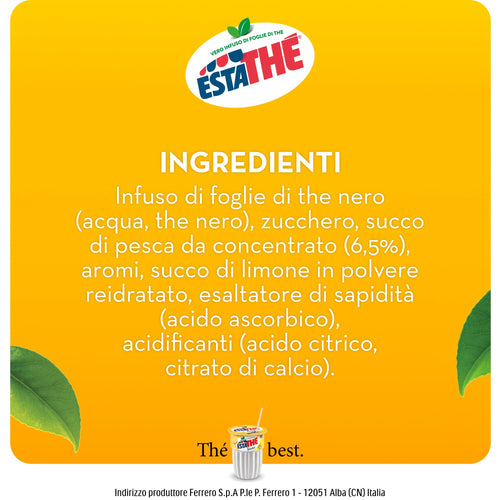 Estathé Pesca - The Freddo con Vero Infuso di Foglie di The e Succo di Pesca, Bevanda Analcolica Senza Glutine, 72 Bicchierini da 200 ml