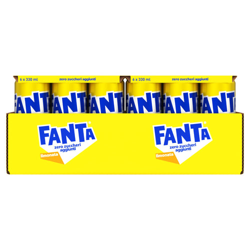 Fanta Zero Zuccheri Gusto Limone, con Succo di Limone di Siracusa, Senza Zuccheri Aggiunti e Conservanti, Lattina 100% riciclabile, Gusto Rinfrescante - 24 lattine da 330 ml