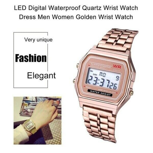 Impermeabile in oro rosa Moda Uomo Donna Orologio da polso digitale Orologi U.D.