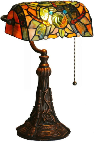 Lampada Da Tavolo in Stile Tiffany, Lampada Da Scrivania Vintage Banchieri in Ve