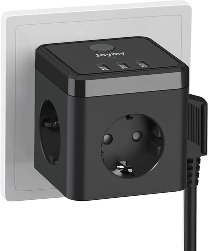 Multipresa Cubo, Con 3 Prese AC (2500W / 10A) E 3 Prese USB, Con Interruttore a