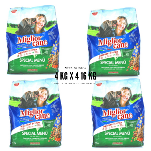 4 PEZZI MIGLIOR CANE 4 Kg Crocchette Manzo Cibo Per cani POLLO E VERDURE 16 KG