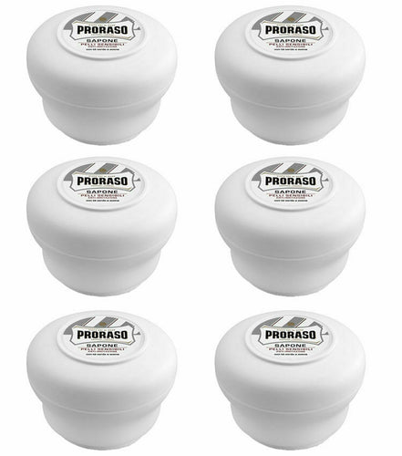 6pz PRORASO SAPONE DA BARBA in ciotola PELLI SENSIBILI anti-irritazione 150ml
